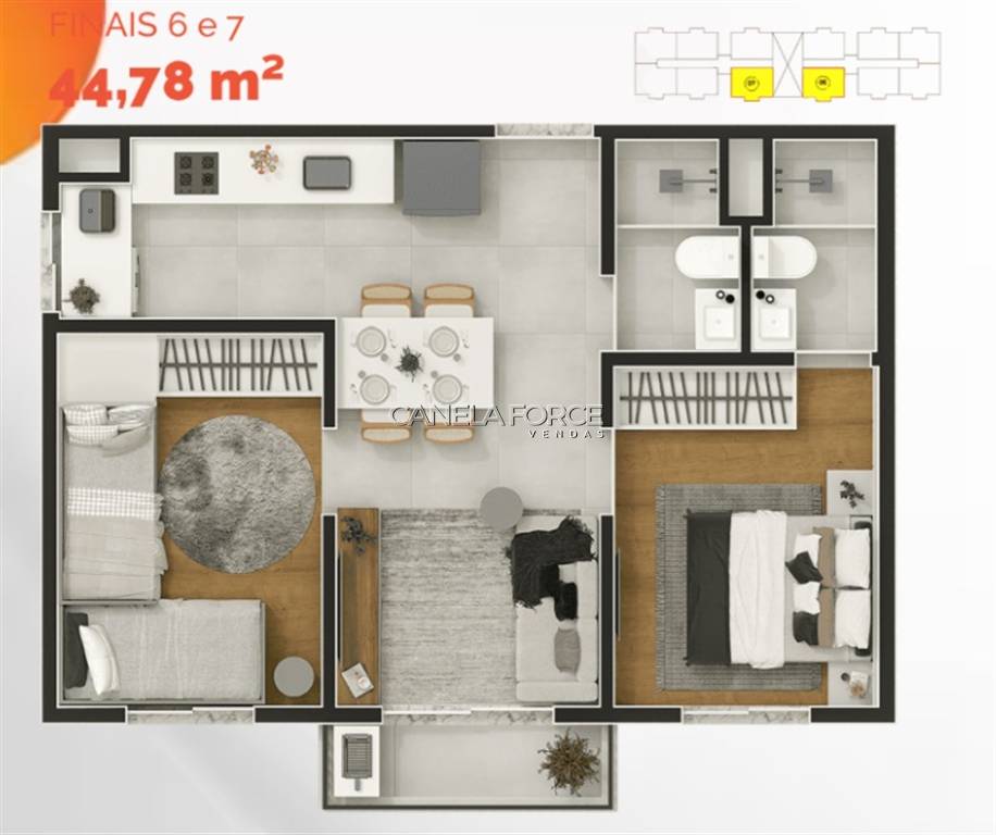 Área Útil45,00m²